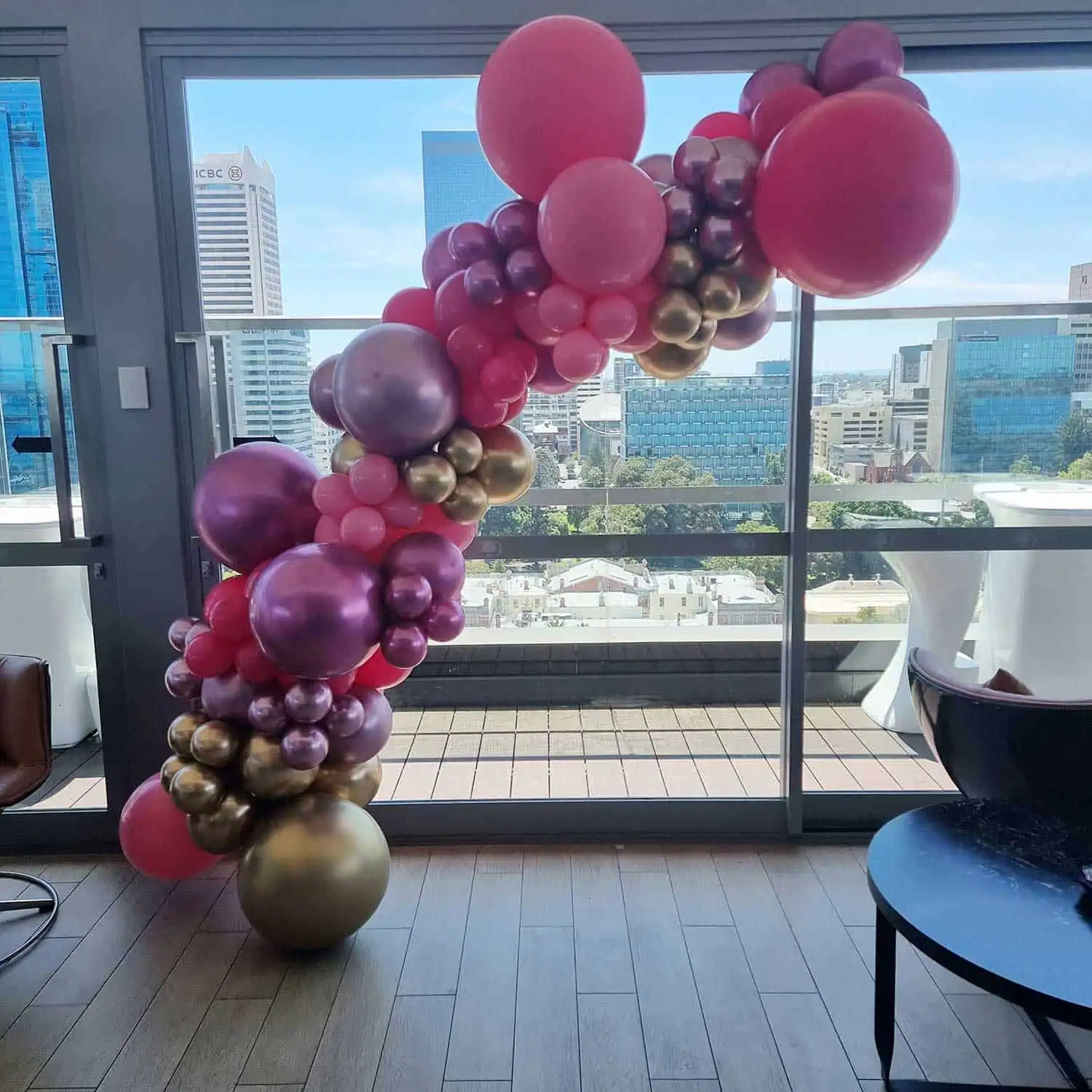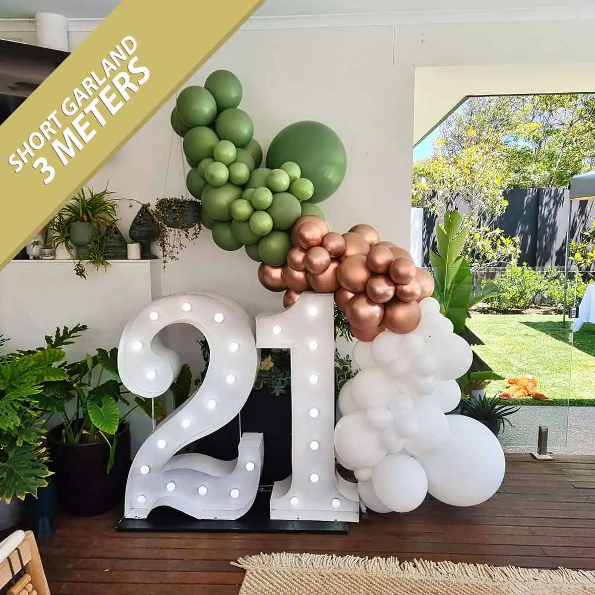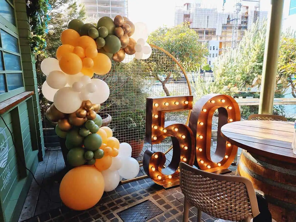 A beautifully tailored balloon garland to make your event space pop! Perfect for birthdays, corporate events, Christmas parties and other special occasions. Our balloon garlands are crafted from an unlimited range of colours – whatever your theme, we can make something to match. Pair these with our light up numbers for a gorgeous birthday party photo backdrop. Available in three standard sizes: Short – 3m; Medium – 5m; Long – 7m. For a garland longer than 7m, please contact us for a quote. Additional installation fees may apply depending on location. Check out more photos of this product on our Facebook and Instagram pages.