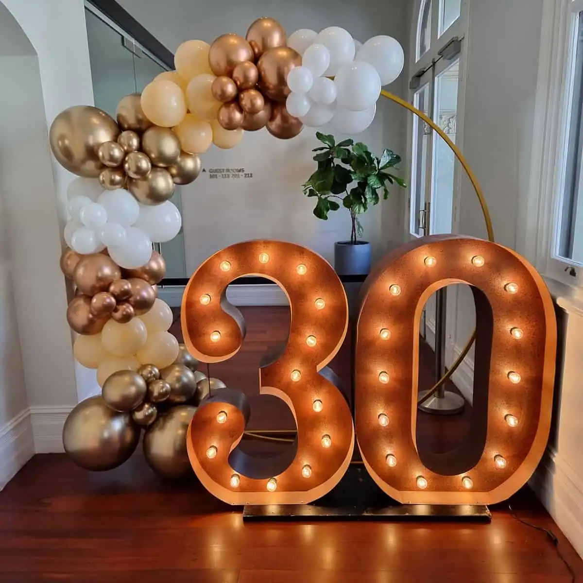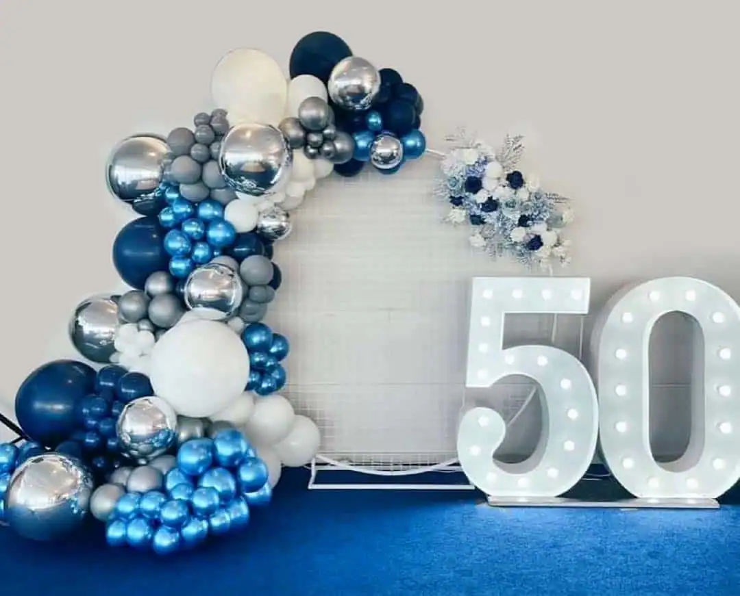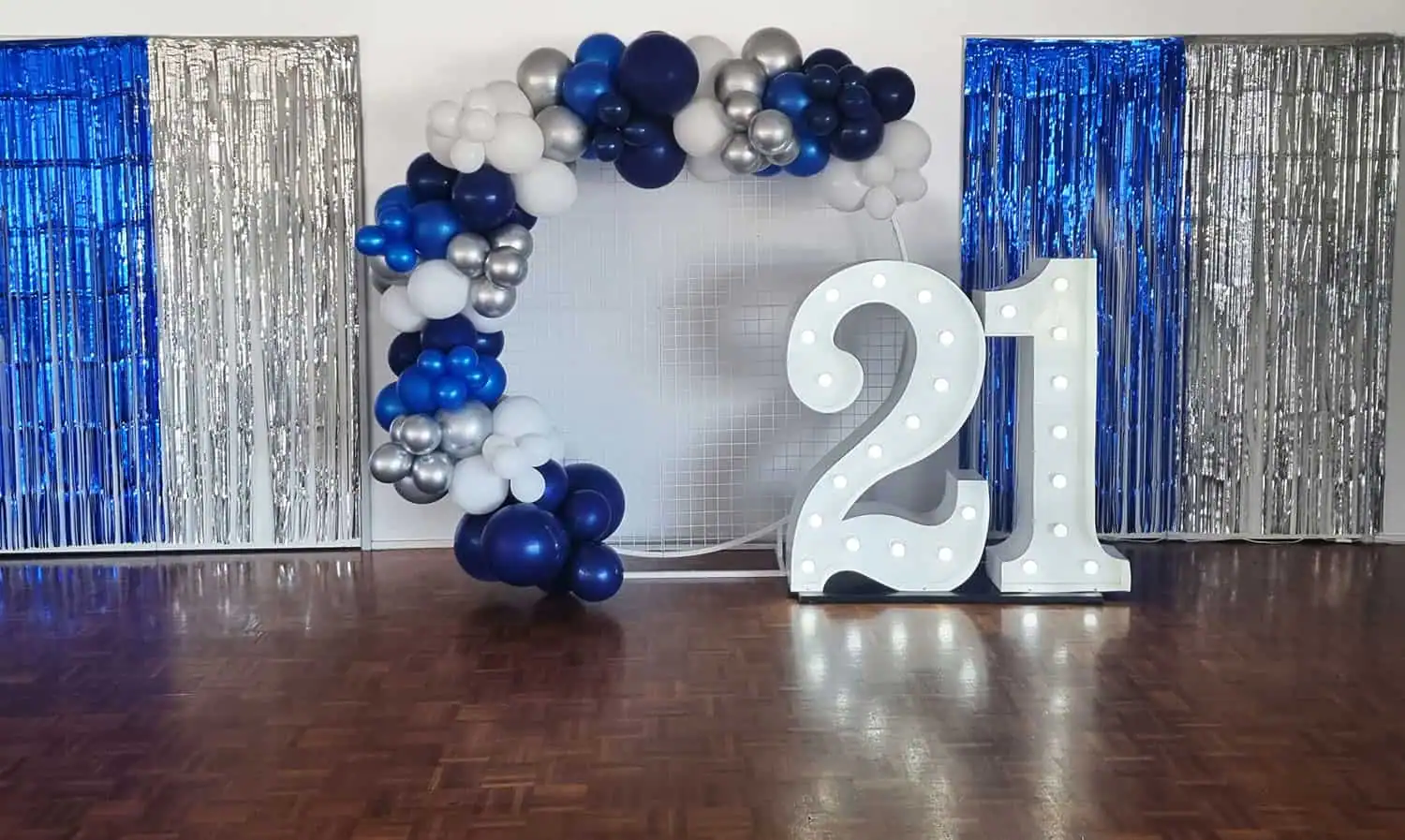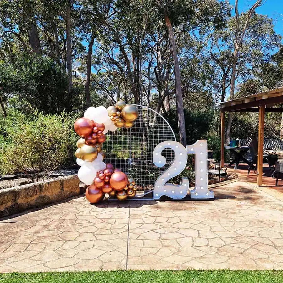 Transform your event into into something truly magical with the Plus Package. This package includes a 2m mesh frame in your choice of white, black or gold with 3m balloon garland and two light up numbers or letters.